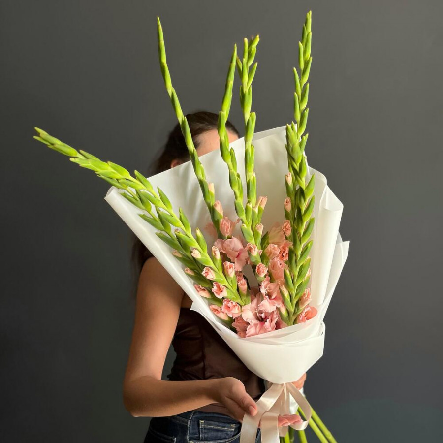 Лента атласная - 1 шт. Гладиолус - 7 шт. Авторская упаковка - 1 шт.